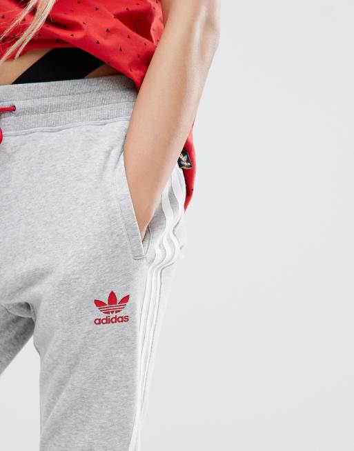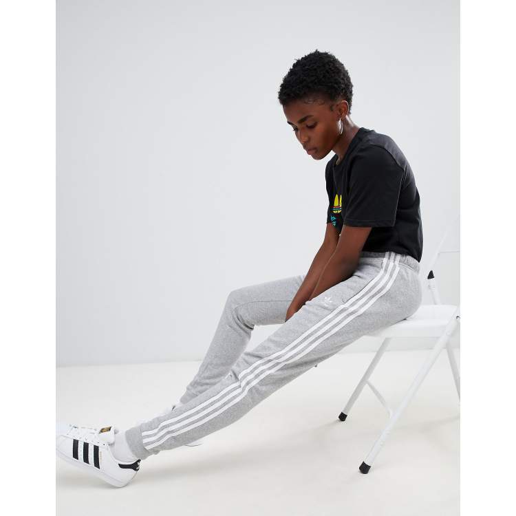 Adidas originals three stripe outlet cuffed sweat pants in grey